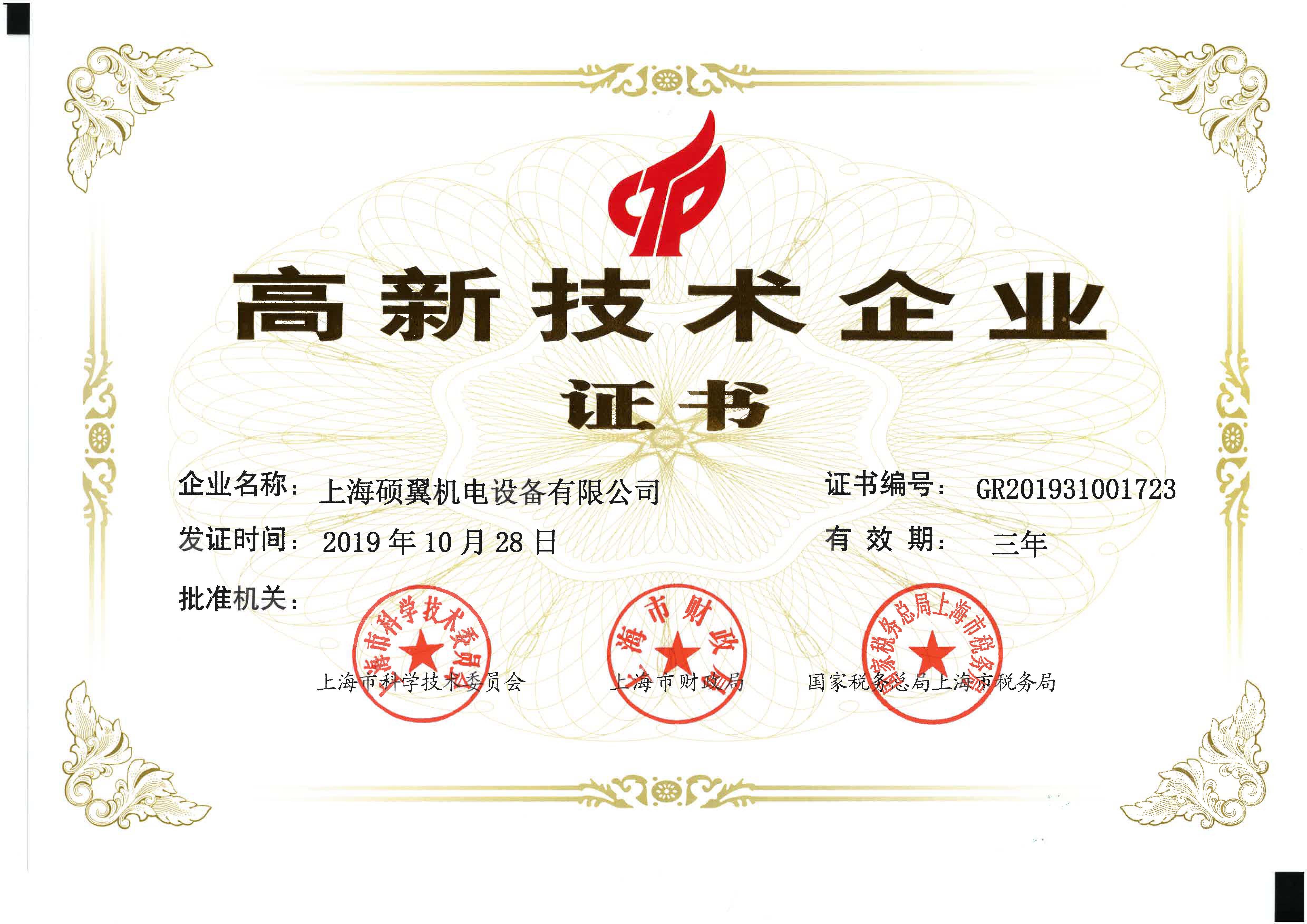 2019年4月,上海硕翼有限公司再次获得“高新技术企业”殊荣,并取得高新技术企业证书[详情>>]